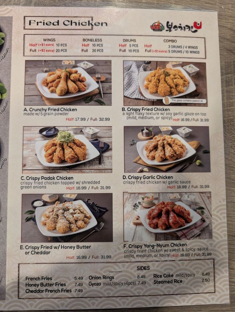 Vons Chicken, located in Sacramento, CA, is a hidden gem offering a variety of chicken wings, ramen, and Korean dishes. Known for their hot and flavorful food, Vons Chicken provides a casual dining experience suitable for groups. Customers rave about their crispy Yangnyum chicken, crispy garlic chicken tenders, and Bulgogi Ramen. The chicken thighs used in their dishes are juicy and well-seasoned, while the ramen is hearty and flavorful. The ambiance is chill, and the staff is quick and polite, making for a pleasant dining experience. Don't miss out on their delicious offerings and efficient service at Vons Chicken.